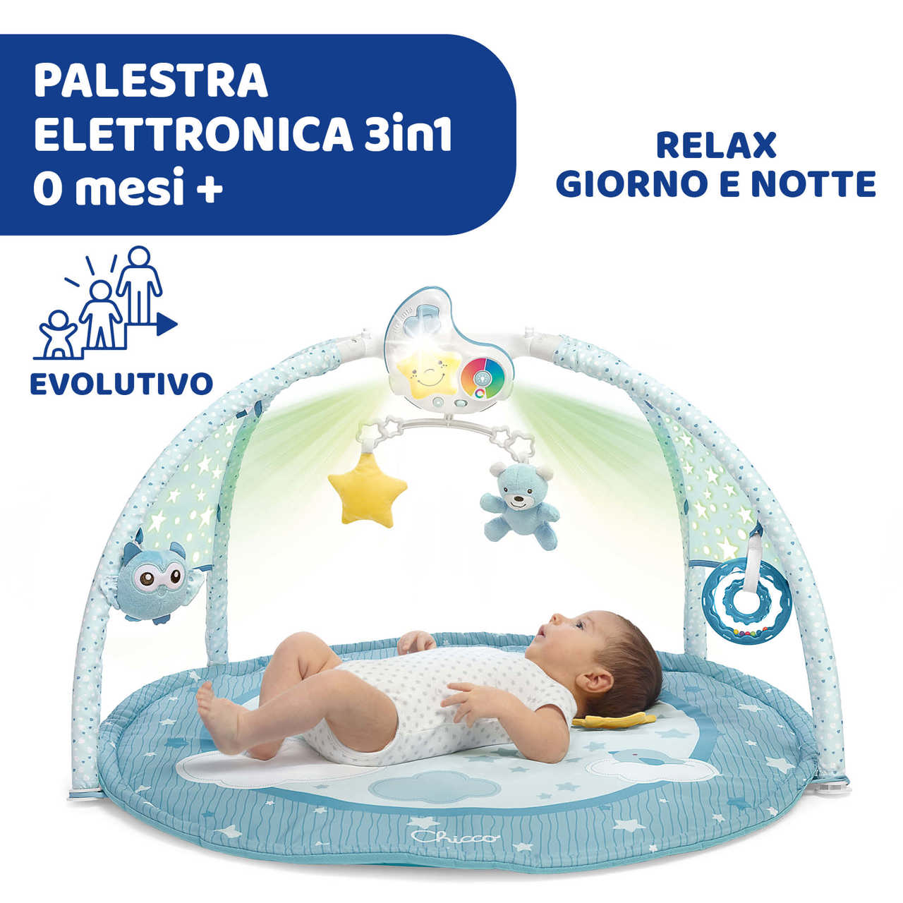 - Il modulo a forma di luna è removibile dalla palestrina e si può posizionare comodamente sul comodino per accompagnare il bambino nel momento della nanna anche con l’apposita funzione luce notte